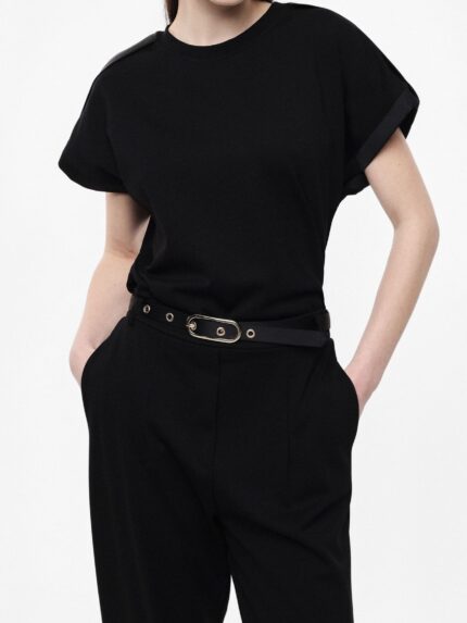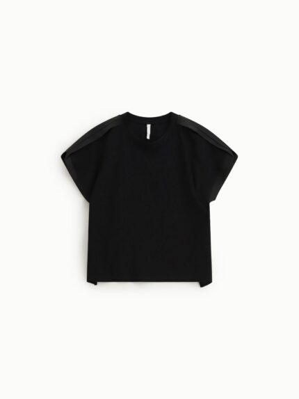 Bluzka z usztywniającymi poduszkami na ramionach.