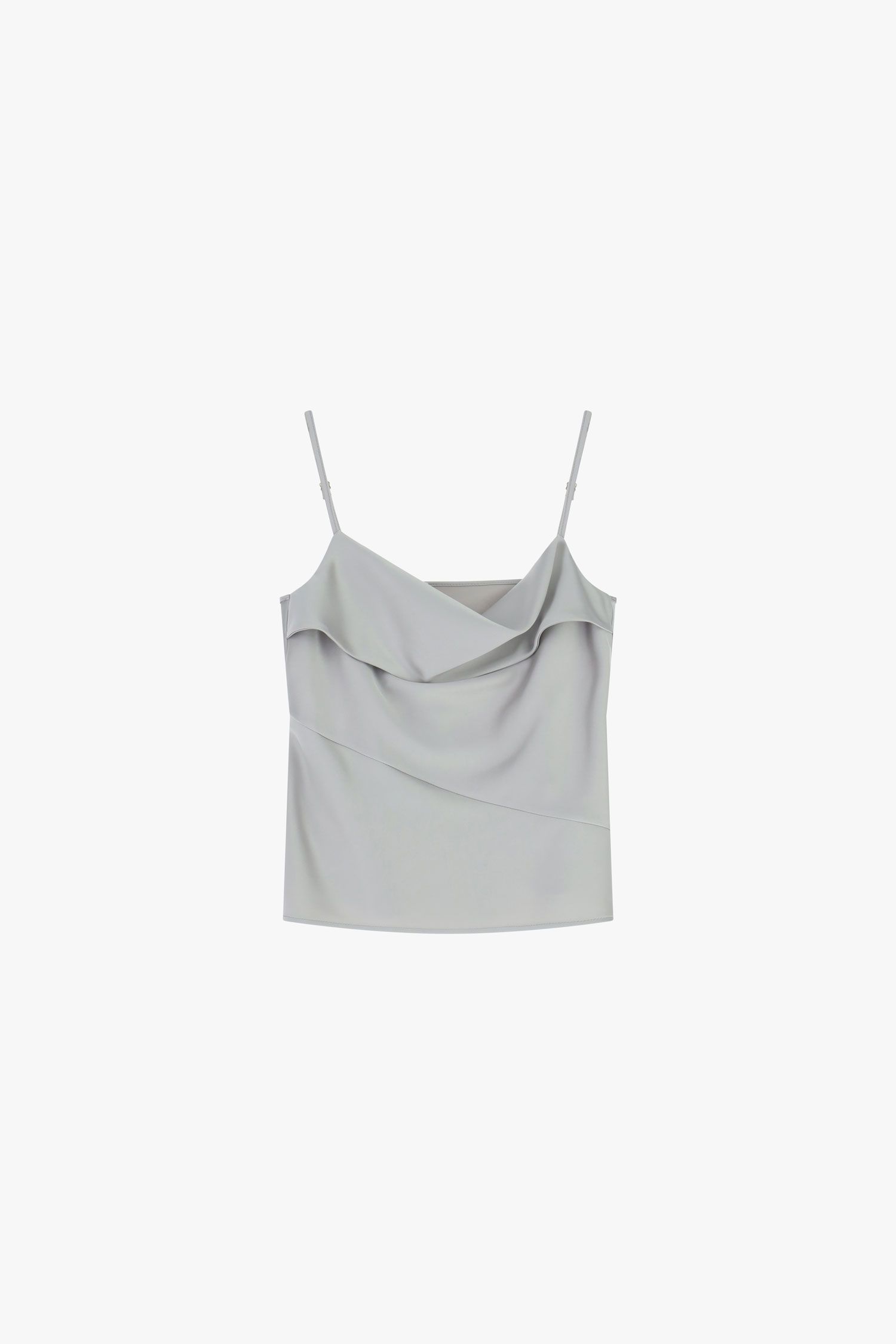 Bluzka z płynnym dekoltem typu 'golf’, który dodaje sylwetce wyrafinowanego charakteru. Dzięki cienkim ramiączkom, tę część garderoby można kreatywnie zestawiać z dopasowanymi spodniami lub spódnicami, wzbogacając miejską garderobę i oferując liczne możliwości stylizacji, idealne do współczesnych stylizacji.