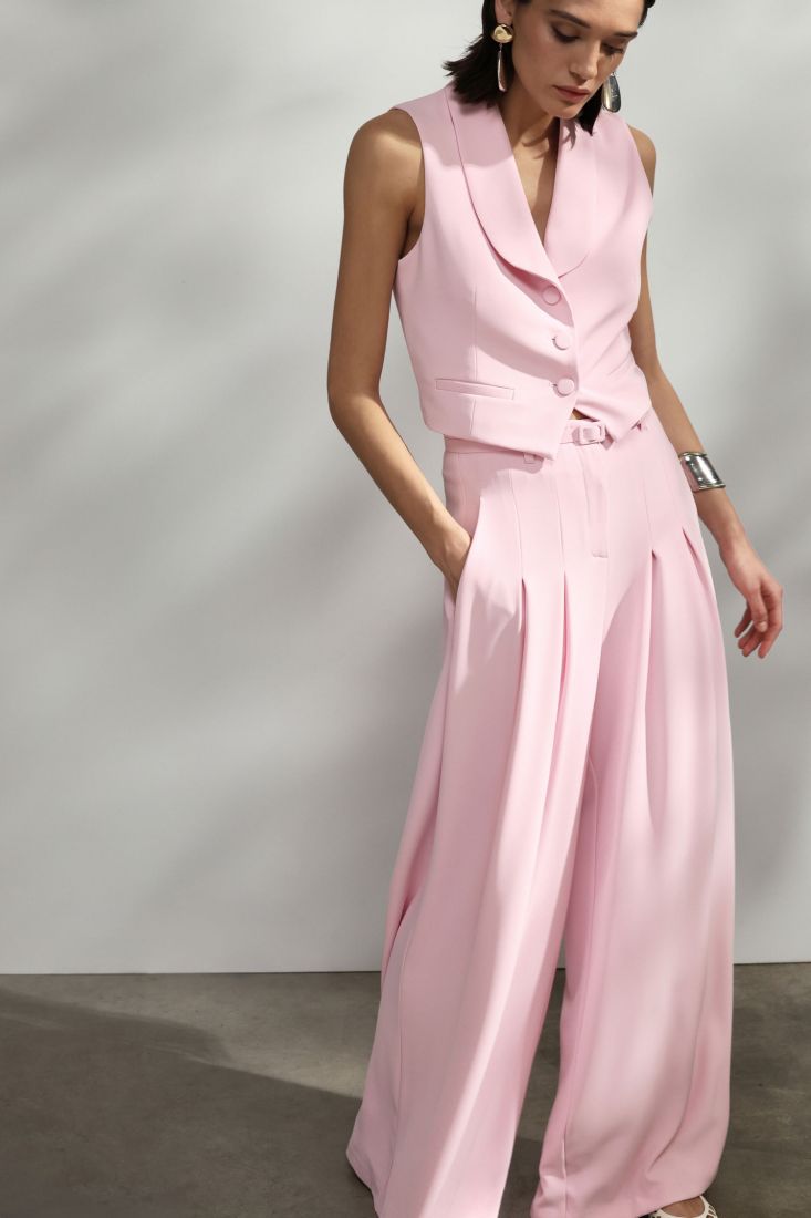 Elegancka i wszechstronna kamizelka, idealna do dodania odrobiny klasy do każdego codziennego stroju. Bezrękawnikowy krój zapewnia swobodę ruchu, a zapięcie na jeden guzik zapewnia ścisłe i eleganckie dopasowanie. Jednolita powierzchnia w kolorze to idealne płótno do wyrażania Twojego osobistego stylu.