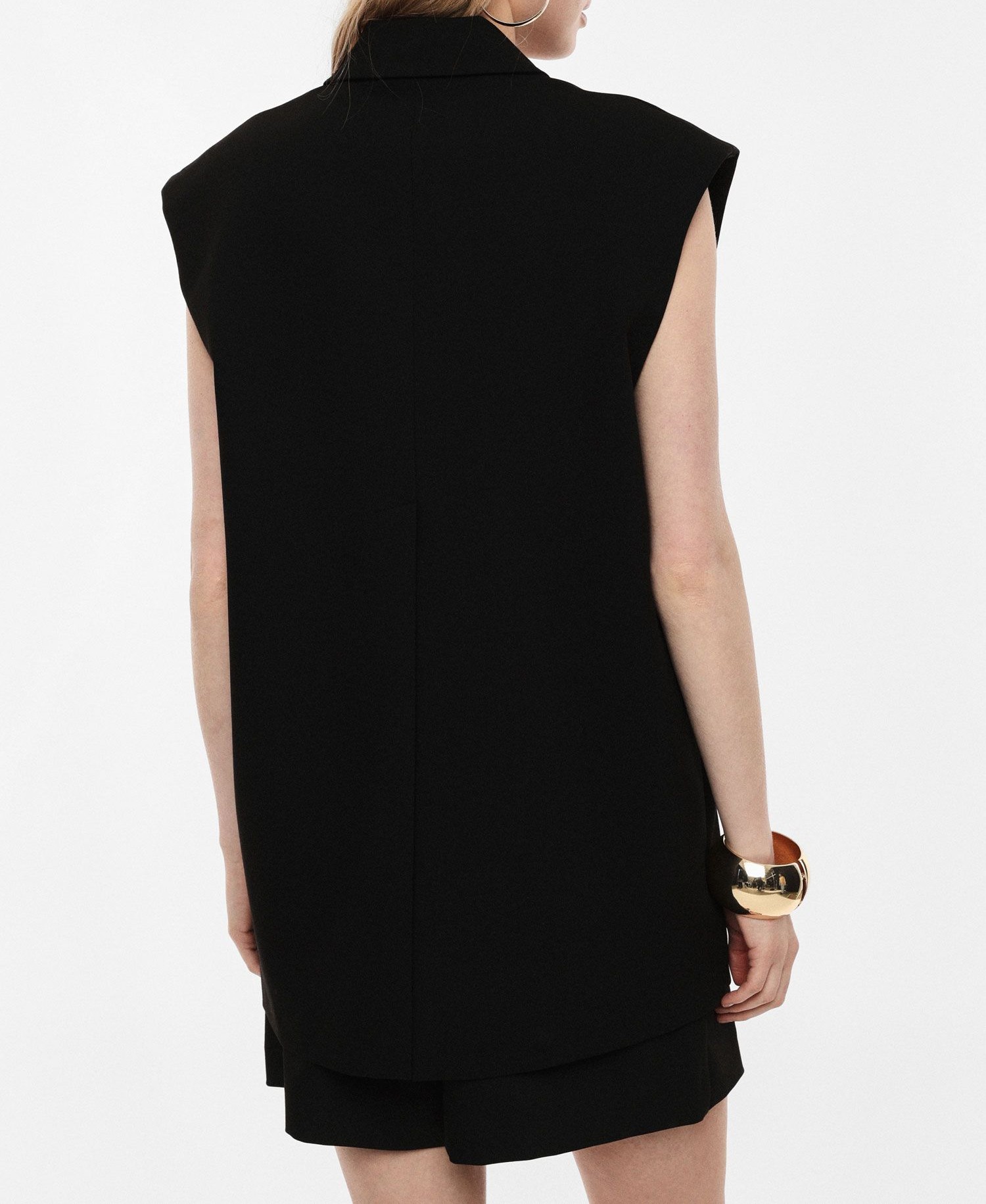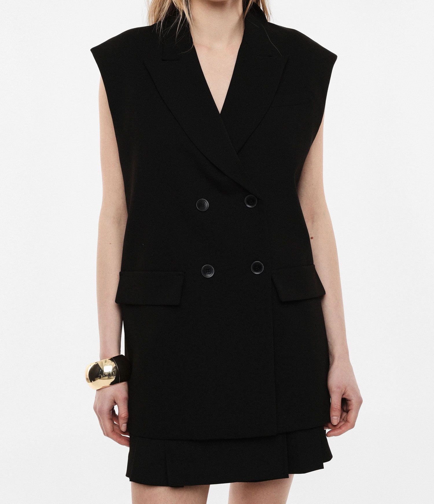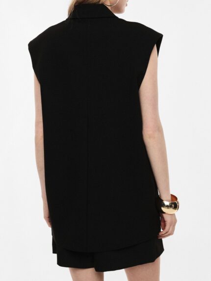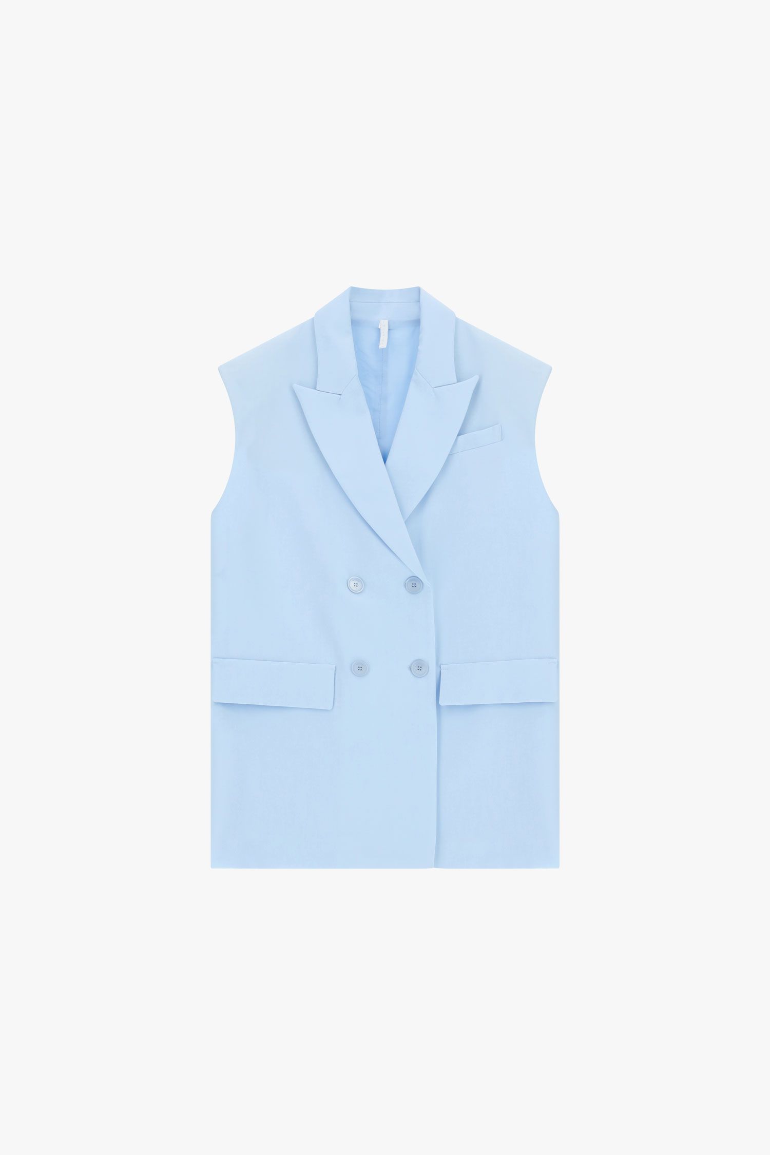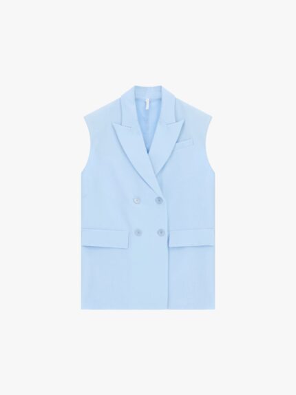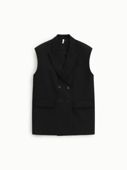 Dwurzędowa kamizelka o dopasowanym kroju z klasycznymi klapami i kieszeniami z patkami. Ostry krój pozwala na wszechstronne stylizacje i kreatywne łączenie warstw, dzięki czemu idealnie nadaje się do wyrafinowanych, modnych zestawień. Dostępna w szerokiej gamie odcieni, podkreślających osobowość w nowoczesnych stylizacjach.