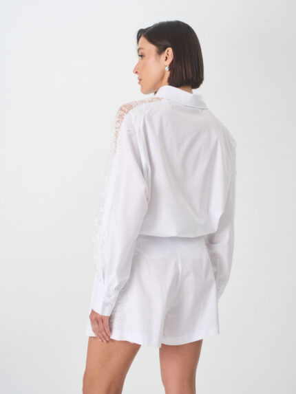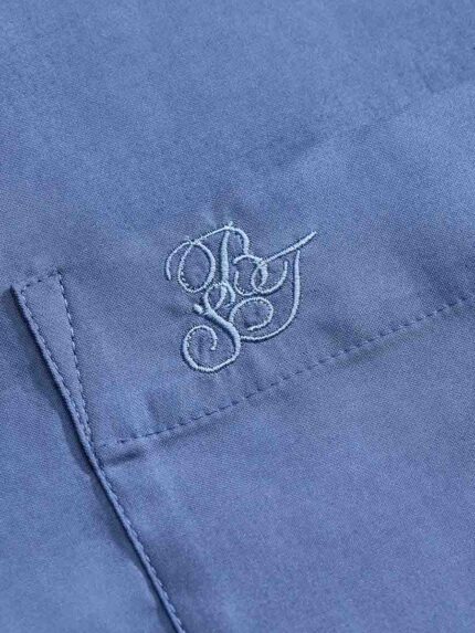 Klasyczny kołnierzyk, logowane guziki ukryte pod listwą.