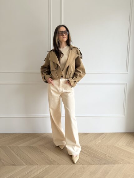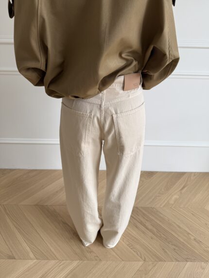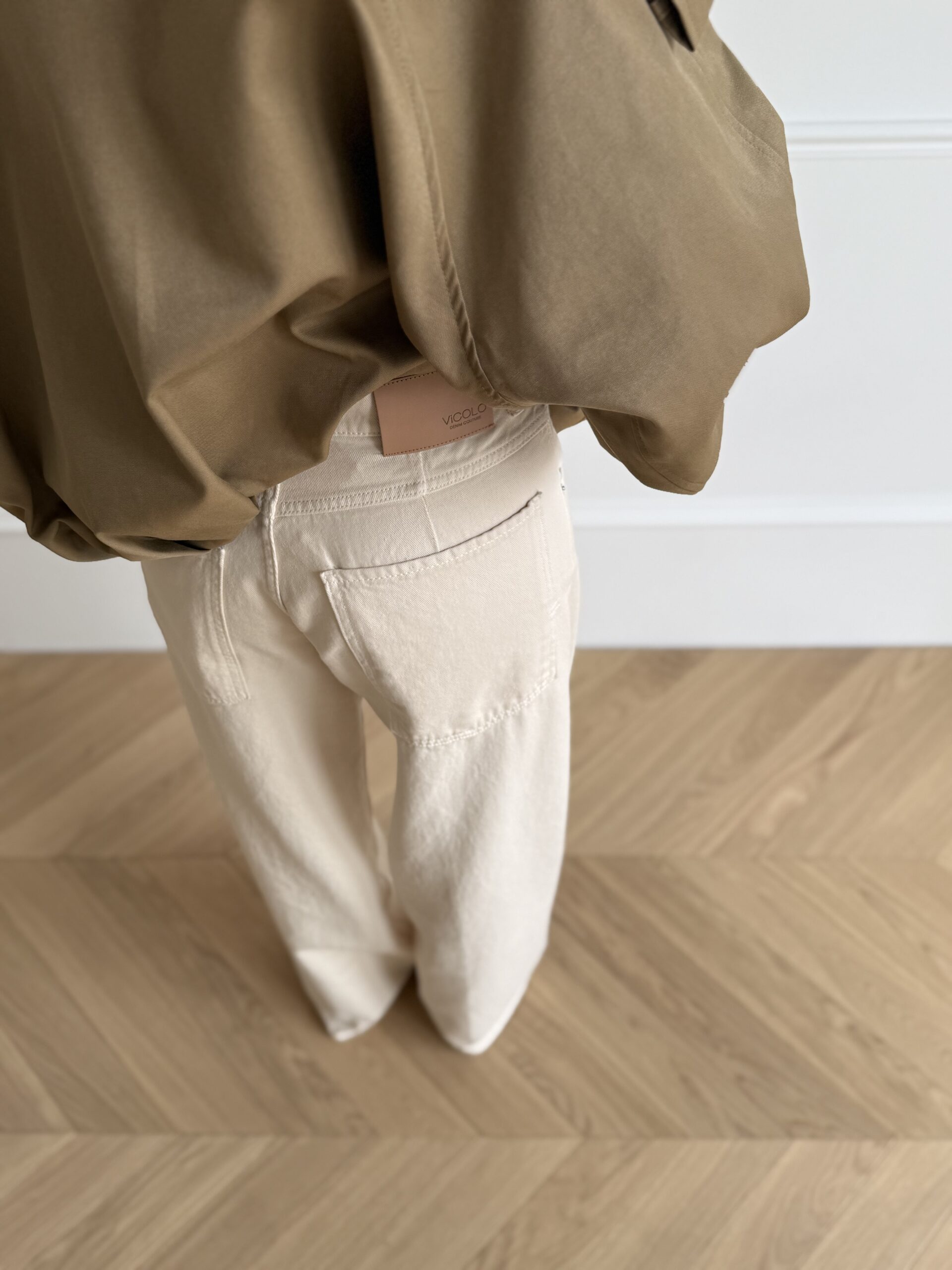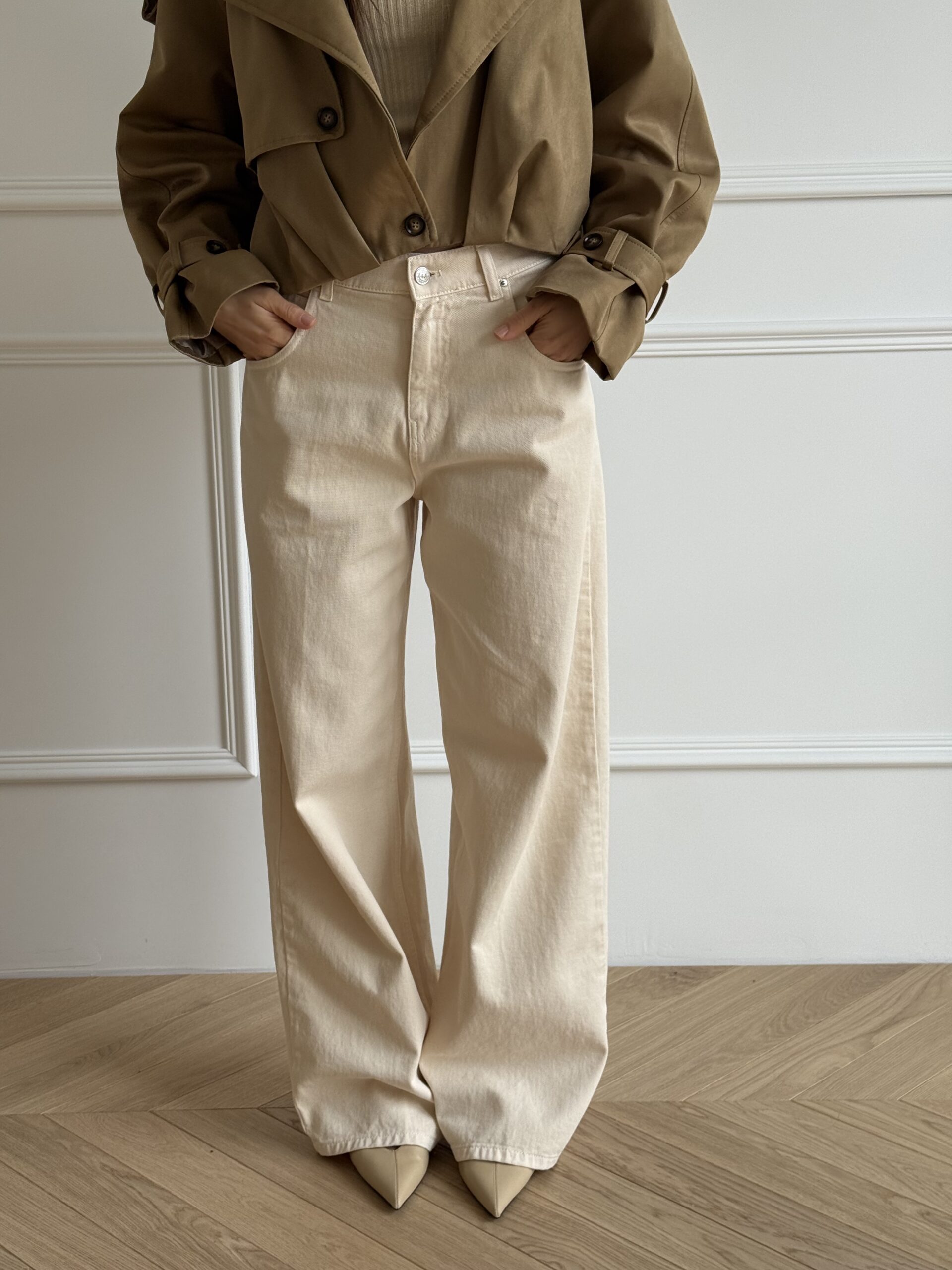 Jeansy z szerokimi nogawkami i pięcioma kieszeniami. Zapinane na suwak z przodu i metalowy guzik. Średni stan, szerokie nogawki.