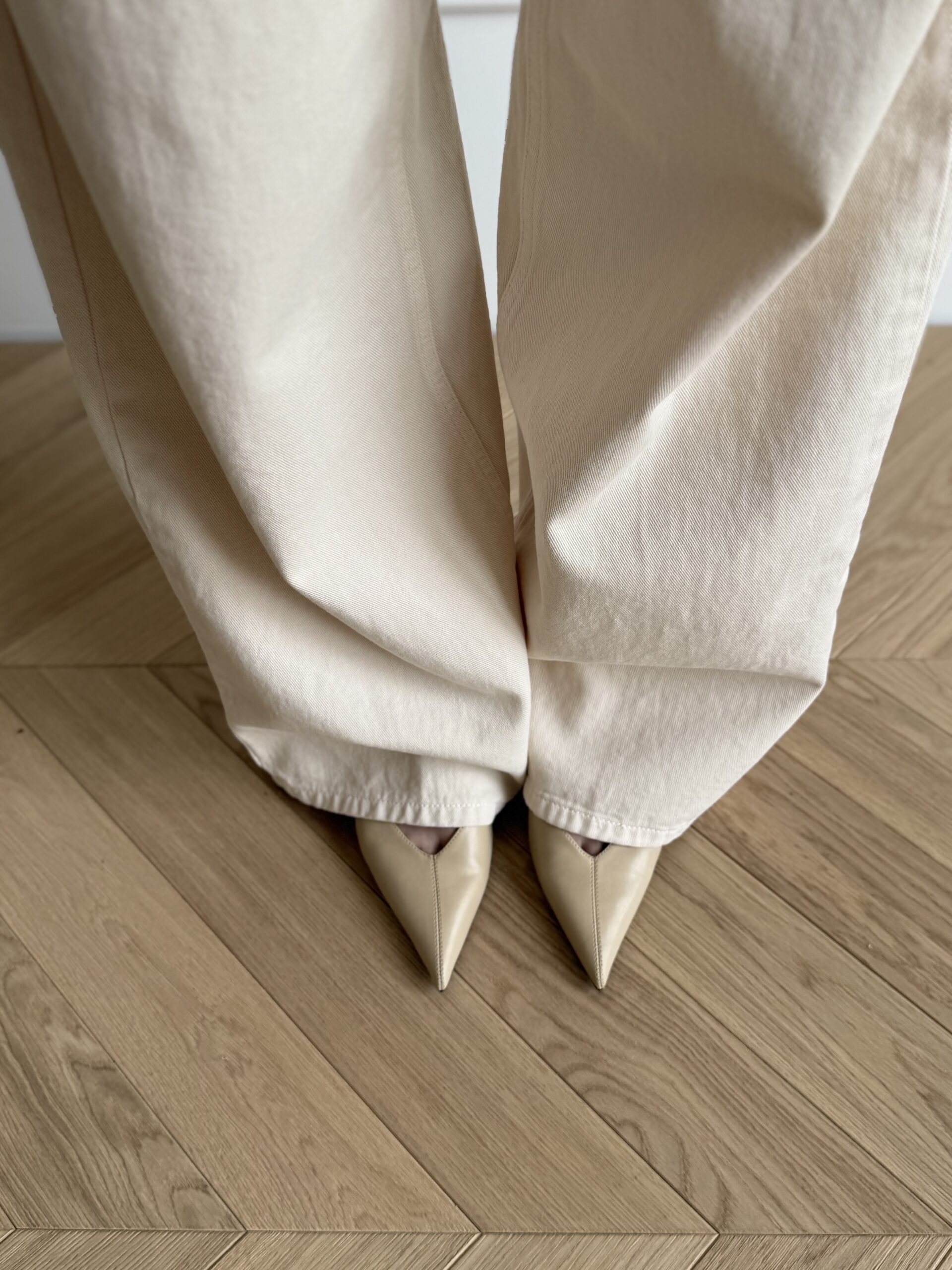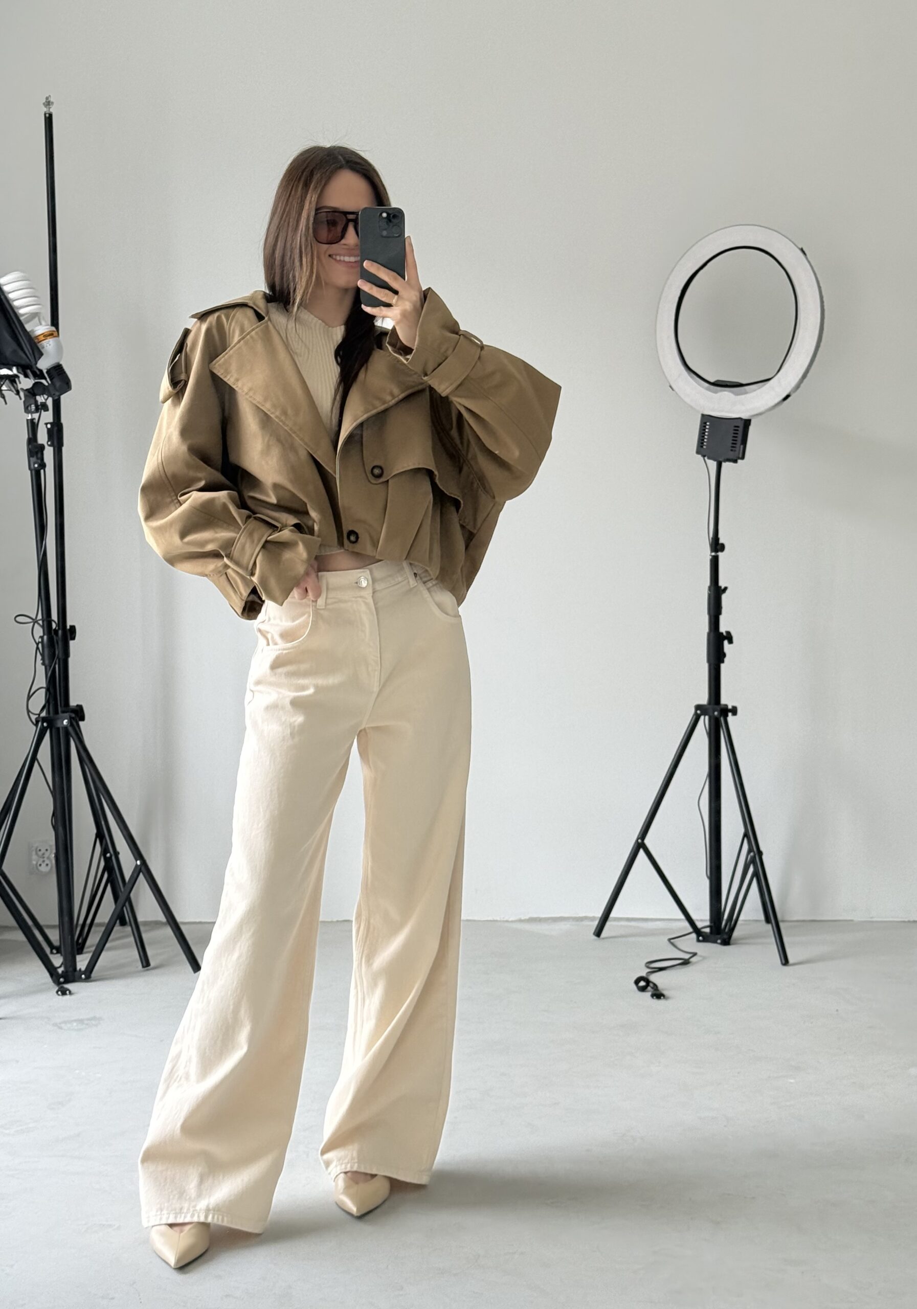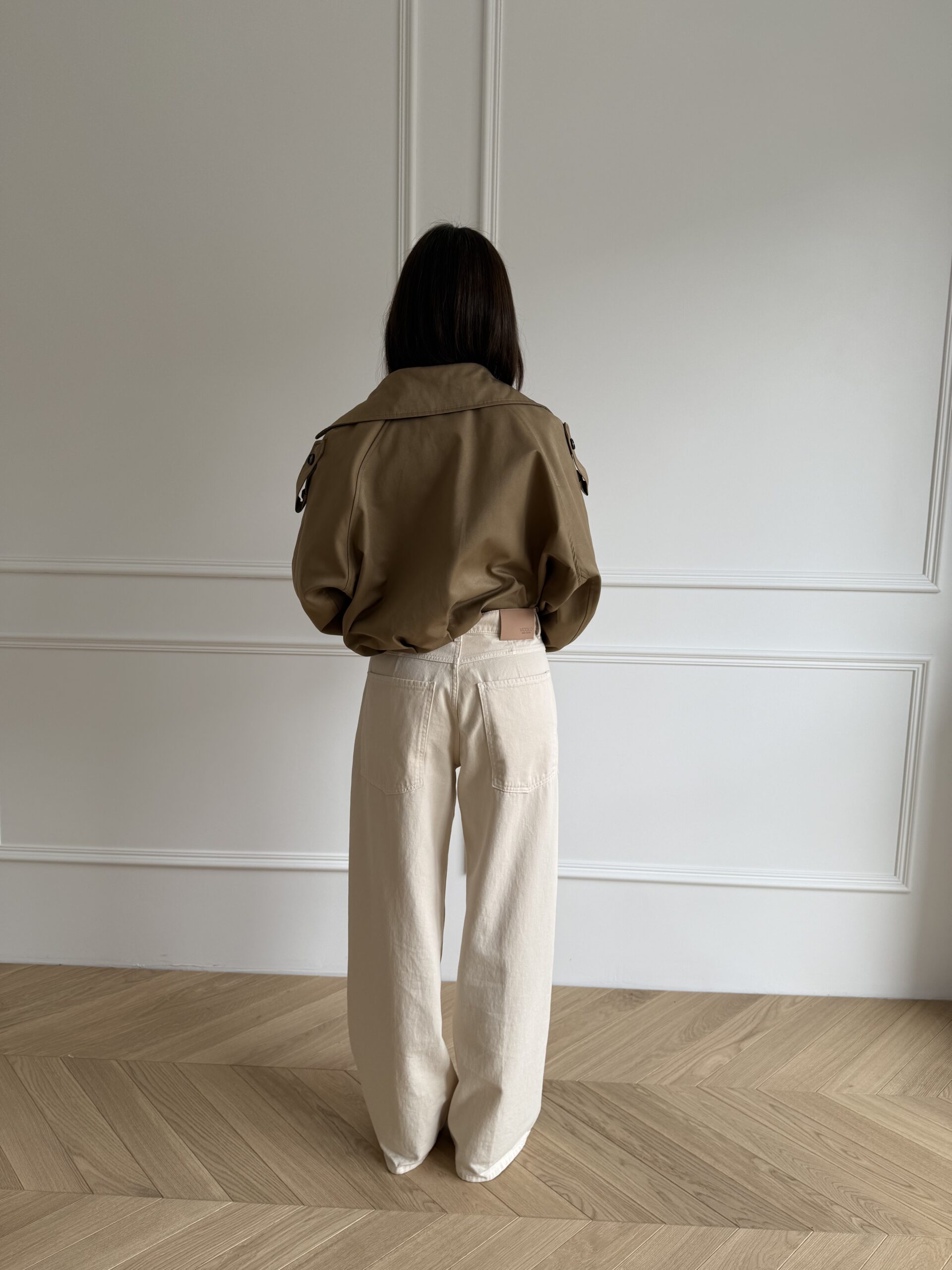 Jeansy z szerokimi nogawkami i pięcioma kieszeniami. Zapinane na suwak z przodu i metalowy guzik. Średni stan, szerokie nogawki.