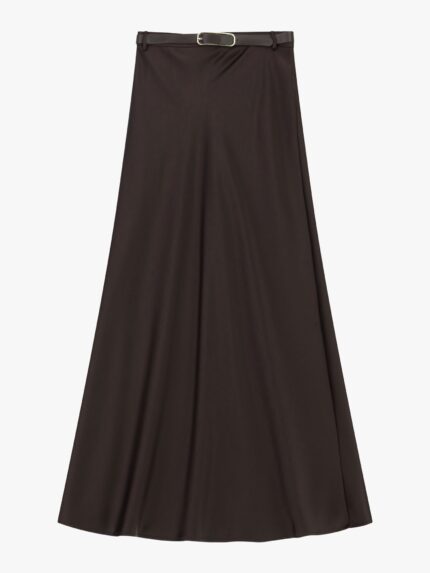 Ta długa spódnica emanuje powagą i klasą. Jej otulający krój i wysoki stan zapewniają nienaganną sylwetkę, podczas gdy jednolity kolor daje nieograniczone możliwości łączenia. Idealna na okazje, gdzie liczy się każdy detal, staje się kluczowym elementem wyrafinowanej i wszechstronnej garderoby.