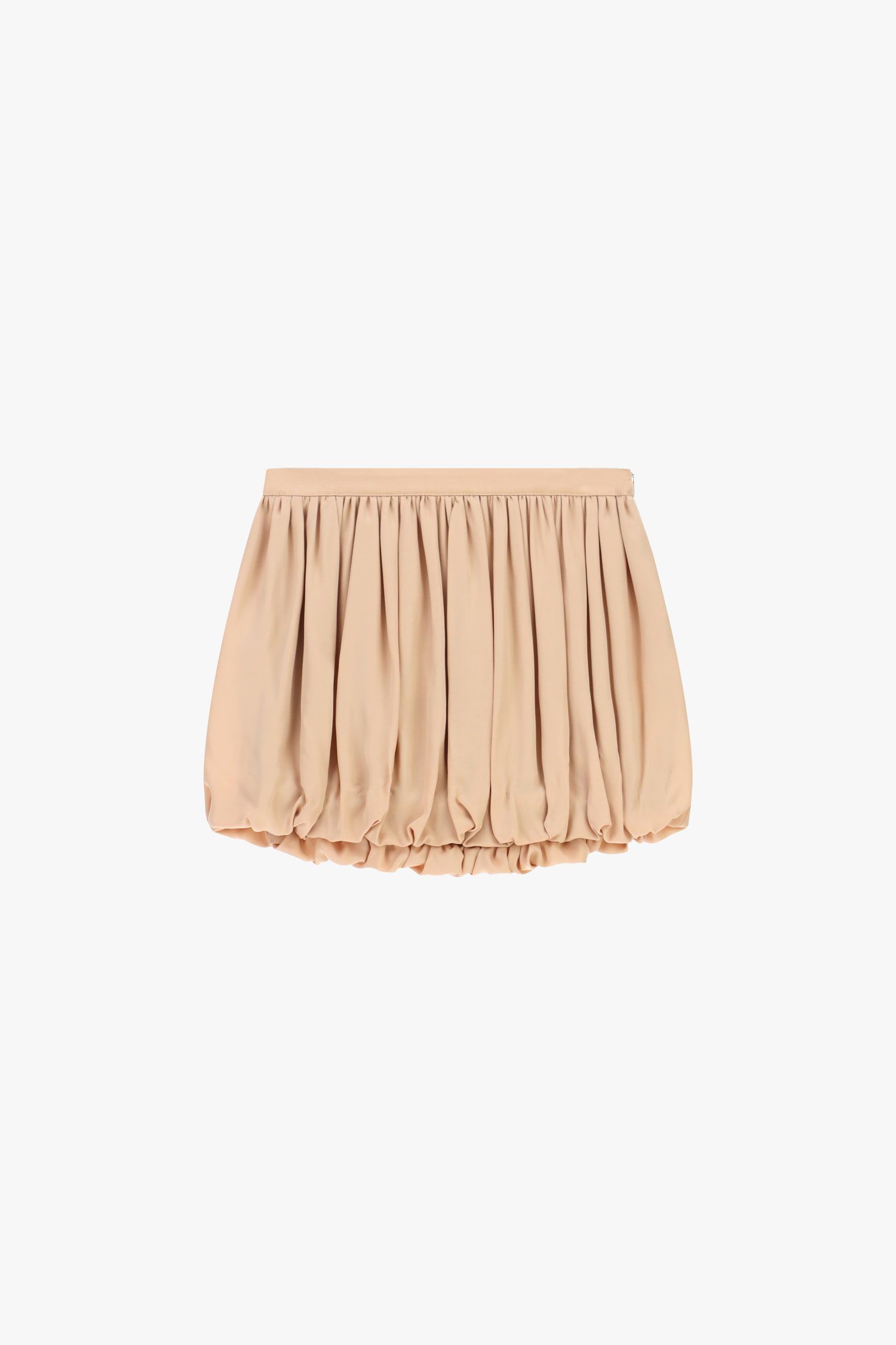 Krótka spódnica o kroju balonowym z wysokim, elastycznym pasem, zapewniającym bezpieczne i wygodne dopasowanie. Marszczenia nadają jej wyrazistej objętości, idealnej dla osób, które chcą wzbogacić swoją garderobę o nowoczesne akcenty. Uniwersalny fason, który z łatwością dopasujesz do swoich stylizacji, tworząc niepowtarzalne, wyrafinowane stylizacje.