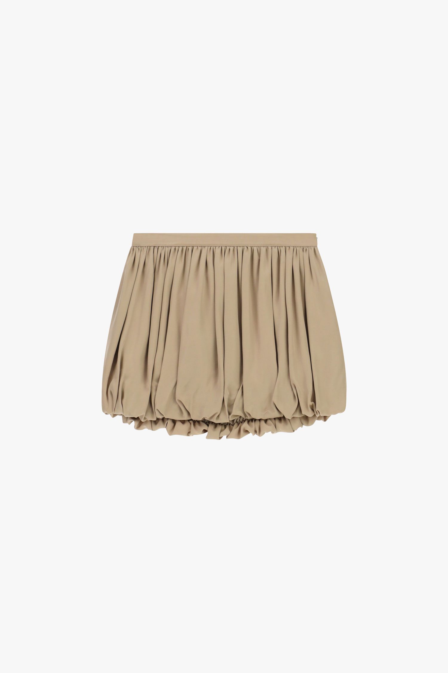 Krótka spódnica o kroju balonowym z wysokim, elastycznym pasem, zapewniającym bezpieczne i wygodne dopasowanie. Marszczenia nadają jej wyrazistej objętości, idealnej dla osób, które chcą wzbogacić swoją garderobę o nowoczesne akcenty. Uniwersalny fason, który z łatwością dopasujesz do swoich stylizacji, tworząc niepowtarzalne, wyrafinowane stylizacje.