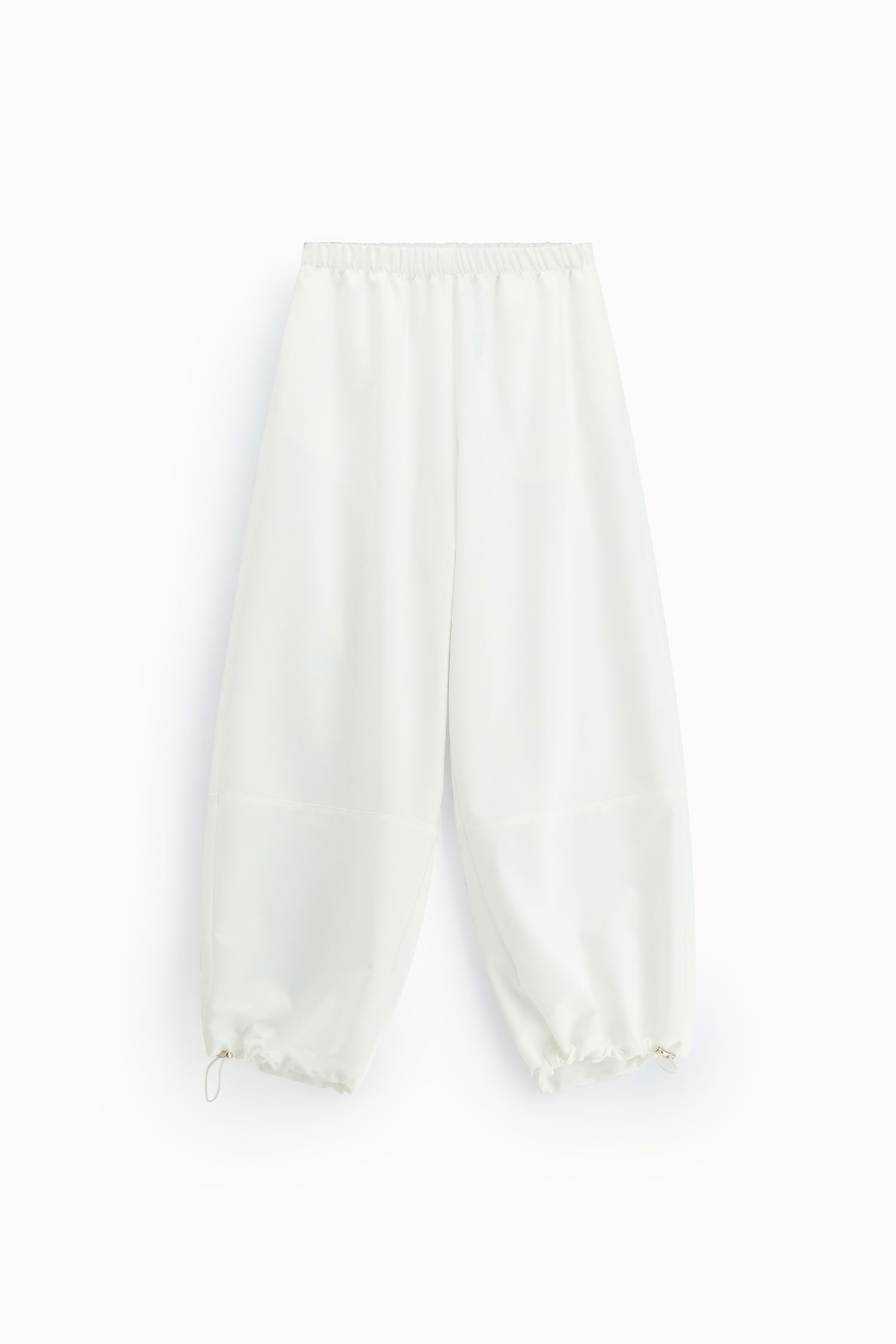 Spodnie o szerokim, luźnym kroju z wysokim elastycznym pasem i regulowanym ściągaczem u dołu.
