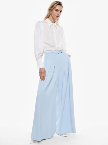 Odkryj nowe horyzonty stylów dzięki tym szerokim i zwiewnym spodniom. Wysoki stan definiuje sylwetkę, a szerokie nogawki dodają odrobinę majestatu. Idealne na wieczór w mieście lub na specjalne wydarzenie, oferują niezrównany komfort bez poświęcania elegancji. Niech Twój strój przemówi za Ciebie dzięki temu wszechstronnemu i wyrafinowanemu elementowi garderoby.