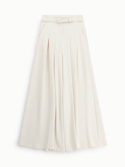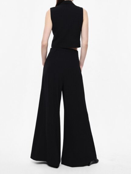 Spodnie o dopasowanym kroju, wysoki stan, pionowe kieszenie, podwinięte nogawki.