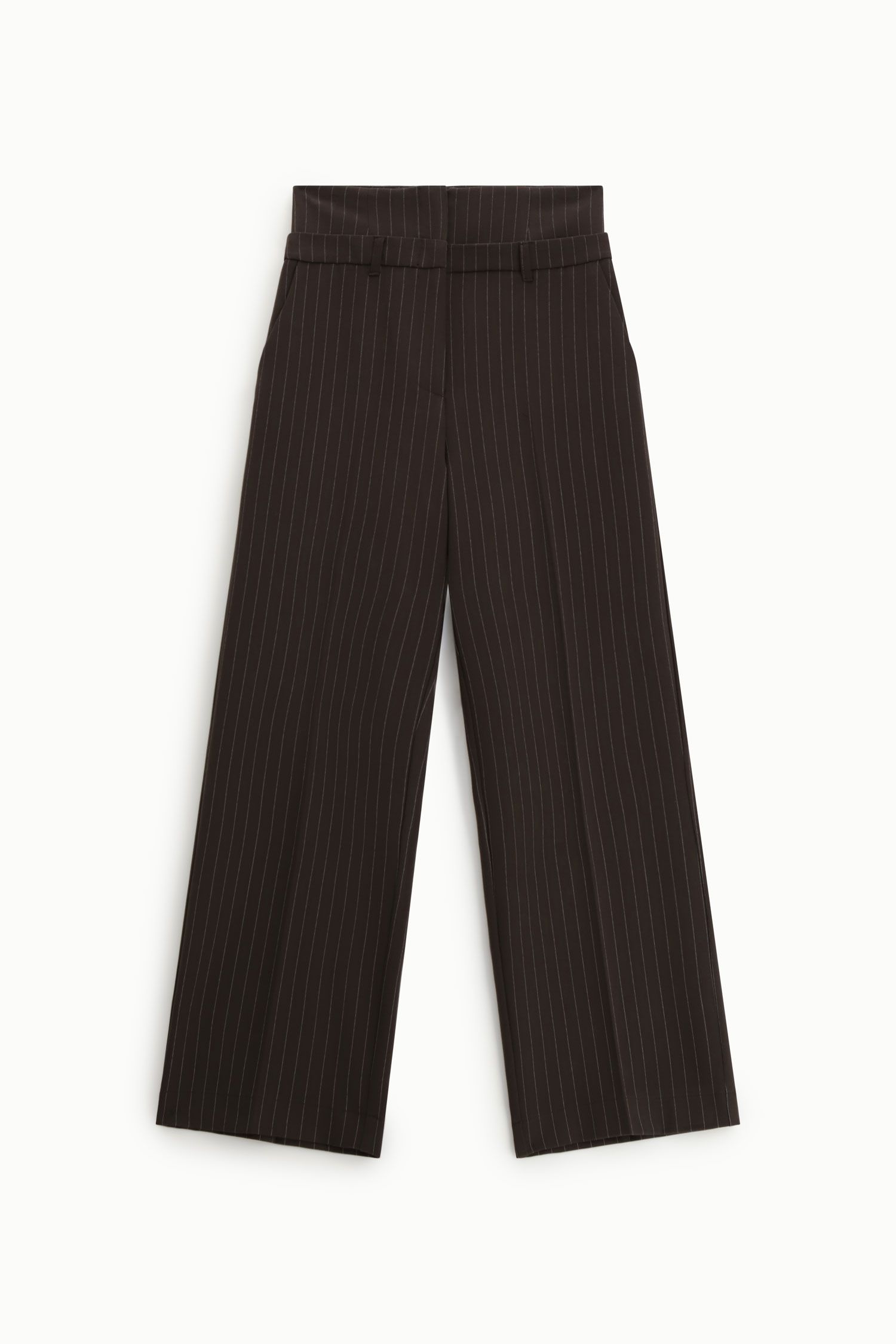 Spodnie o szerokich nogawkach mają wysoką talię i subtelne pionowe paski, tworząc elegancki wygląd zarówno w profesjonalnych, jak i miejskich stylizacjach. Luźny krój zapewnia swobodę ruchów, a paski przy talii pozwalają na indywidualne stylizacje. Idealne dla osób o wyrafinowanej garderobie.