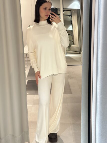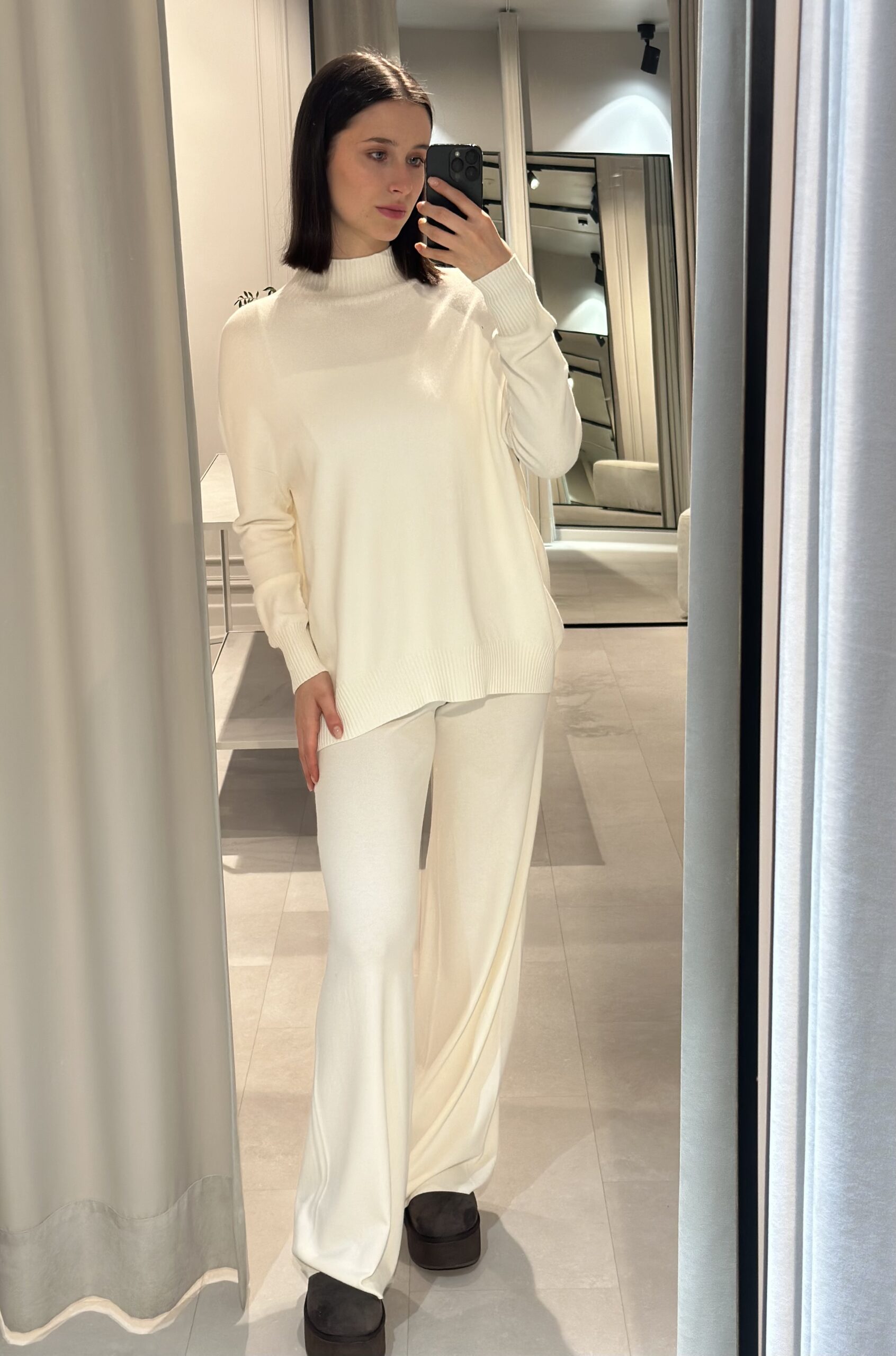 Spodnie z tkaniny dzianinowej, w pasie elastyczna gumka, włoskiej marki Kontatto.