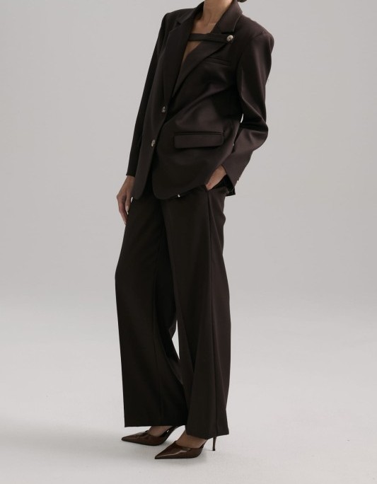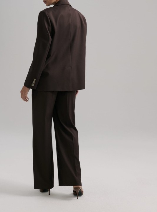 Spodnie Vivien to kwintesencja nowoczesnej elegancji z nutą nonszalancji. Mają wysoki stan, który pięknie podkreśla talię i optycznie wydłuża nogi, a ich szeroka, płynnie opadająca nogawka dodaje sylwetce lekkości i szyku. Zakładki z przodu wprowadzają delikatną strukturę, nadając całości subtelnie garniturowy vibe, ale bez sztywnej formalności. Z tyłu znajduje się kieszeń z patką – detal, który dodaje charakteru i przywołuje skojarzenia z klasycznym tailoringiem. To spodnie, które łączą komfort z wyrafinowanym stylem – idealne do oversize’owej marynarki, ale też świetnie zagrają z dopasowanym topem i minimalistycznymi dodatkami.