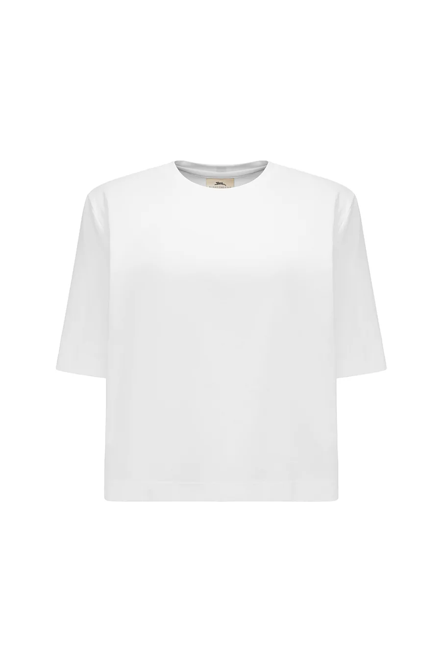 Pudełkowy t-shirt o kroju crop top.